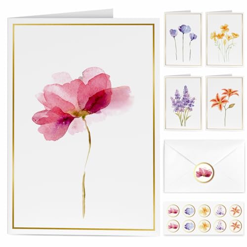 Blank Cards, 30 Pack Greet Cards, Elegant Gold Foil Blank Note with Envelopes, Perfect Stationary Set For All Occasions, 5 Assorted Floral Designs