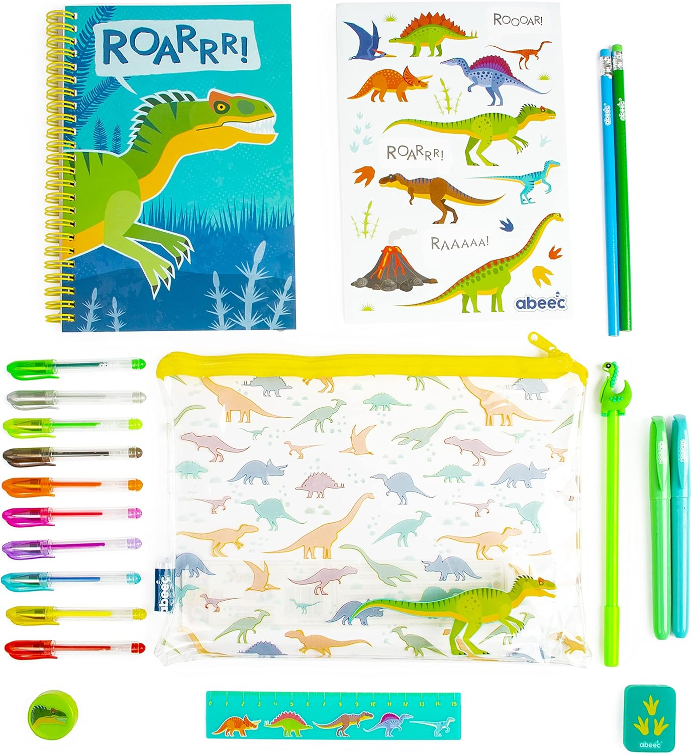 Dinosaur Toys Stationary Set - Dinosaur Gifts - Clear Pencil Case Includes Dinos