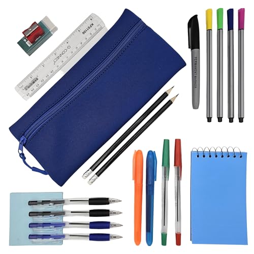 Pre Filled Pencil Case with Stationery Included | Pencil Case Set Stationary Kit | Mini Stationery Set for Office, Home or School – Pencil Case Blue