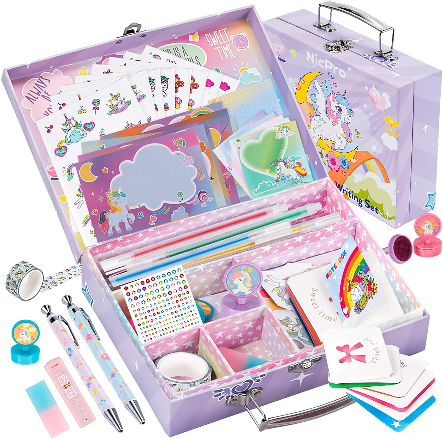 Nicpro 62PCS Unicorn Stationary Set for Girls,Unicorn Kid Toys for Aged 6-10 Years Old, Cute Stationery Supplies Letter Writing Kit Gift for 5,6,7,8,9,10 - Little Girls Ideal Christmas Birthday Gifts