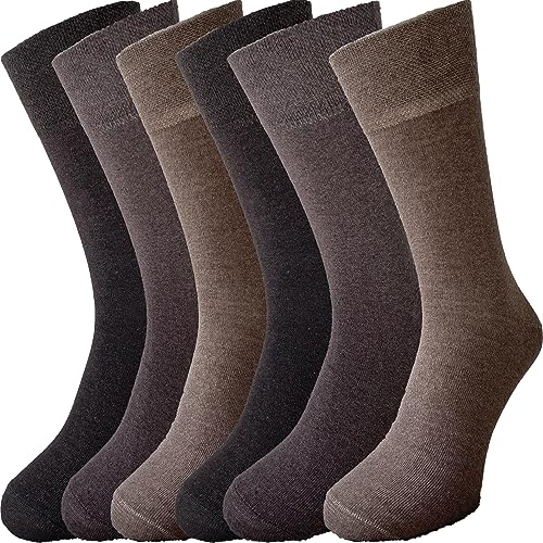 ZombaFlo 6 Pair Gentle Grip Socks for Men 6-11, Non Elastic Comfortable Loose Tops cotton Rich Stay Up Socks Multipack (Brown)