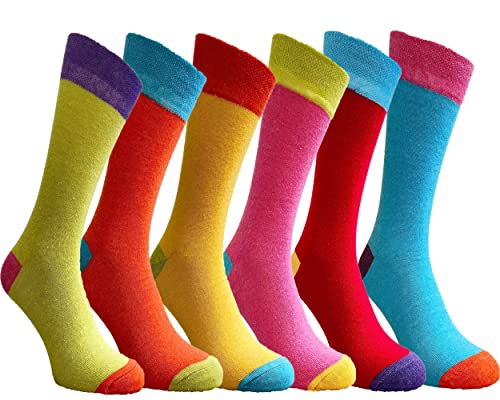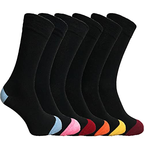 ZombaFlo 6 Pair Diabetic Socks for Men Soft Grip Comfortable Loose Tops cotton Rich Stay Up Socks UK Size 6-11 Multipack (Colourful Heel & Toe)