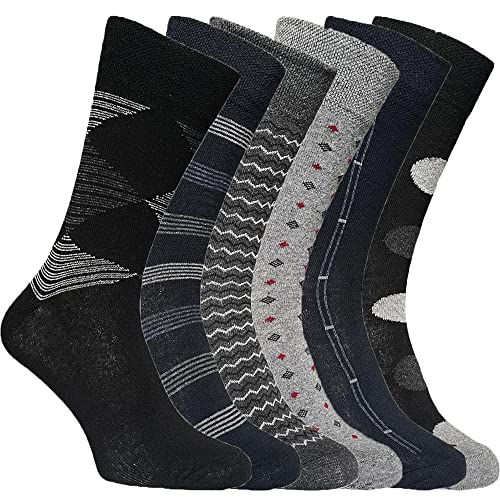 ZombaFlo 6 Pair Diabetic Socks for Men Soft Grip Comfortable Loose Tops cotton Rich Stay Up Socks UK Size 6-11