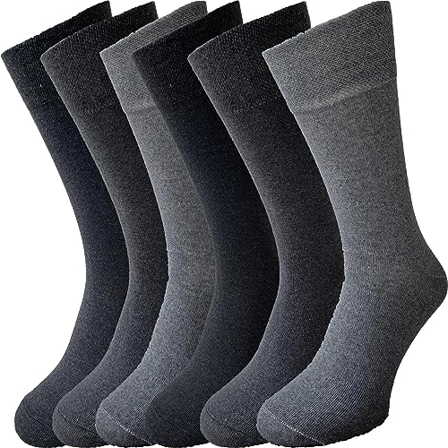 ZombaFlo 6 Pair Diabetic Socks Non Elastic Soft Grip Comfortable Loose Tops cotton Rich Stay Up Socks UK Size 6-11 Multipack (Grey)