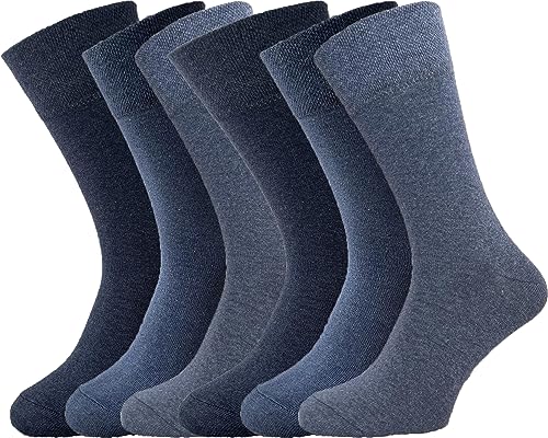 ZombaFlo 6 Pair Diabetic Socks for Men Non Elastic Soft Grip Comfortable Loose Top cotton Rich Stay Up Mens Socks UK Size 6-11 Multipack (Blue)