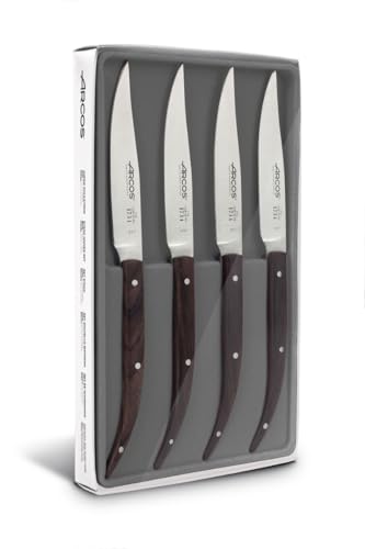Arcos Series Table Knives - Table Knife Set 4 Pieces (Steak Knives) - Blade Nitrum Stainless Steel 4" - Handle Rosewood - Brown Color