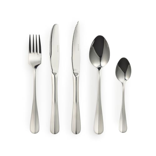 Salter Newbury Cutlery Set – 20 Piece, 18/0 Stainless Steel, 15-Year Guarantee, 4 Place Settings, Includes Forks, Knives, Steak Knives, Dessert Spoons & Teaspoons, Dishwasher Safe