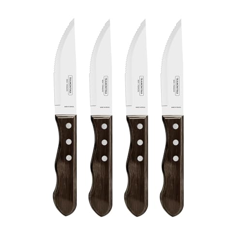 Tramontina 5” Jumbo Steak Knives Set of 4, Sharp Knife with Wooden Handle, Camping, Kitchen, Rustic, 22399079