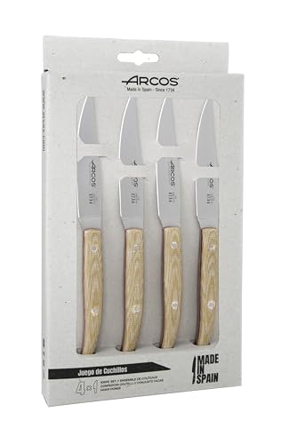 Arcos Series Table Knives - Table Knife Set 4 Pieces (Steak Knives) - Blade Nitrum Stainless Steel 4" - Handle Rosewood - Light Brown Color