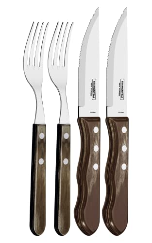 Tramontina 5” Jumbo Steak Knives, Sharp Knife with Wooden Handle, Camping, Kitchen, Rustic, Dishwasher Safe (4 Pcs Cutlery Set)