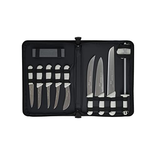 Starrett Professional Butchers Knife Set - 11 Pieces Stainless Steel White Ergonomic Handles Kitchen Chef Knife - Includes Boning Skinning Steak Knives Protector Stone