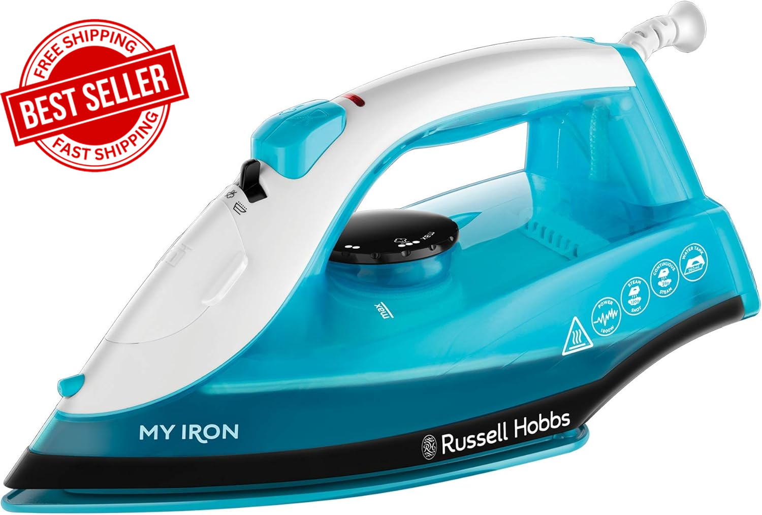Russell Hobbs RHSM1001-G Steam and Clean Steam Mop White & Aqua + Russell Hobbs My Iron Steam Iron, Ceramic Soleplate, 260 ml Water Tank, Self-Clean Function and Two Metre Power Cable, Blue and White