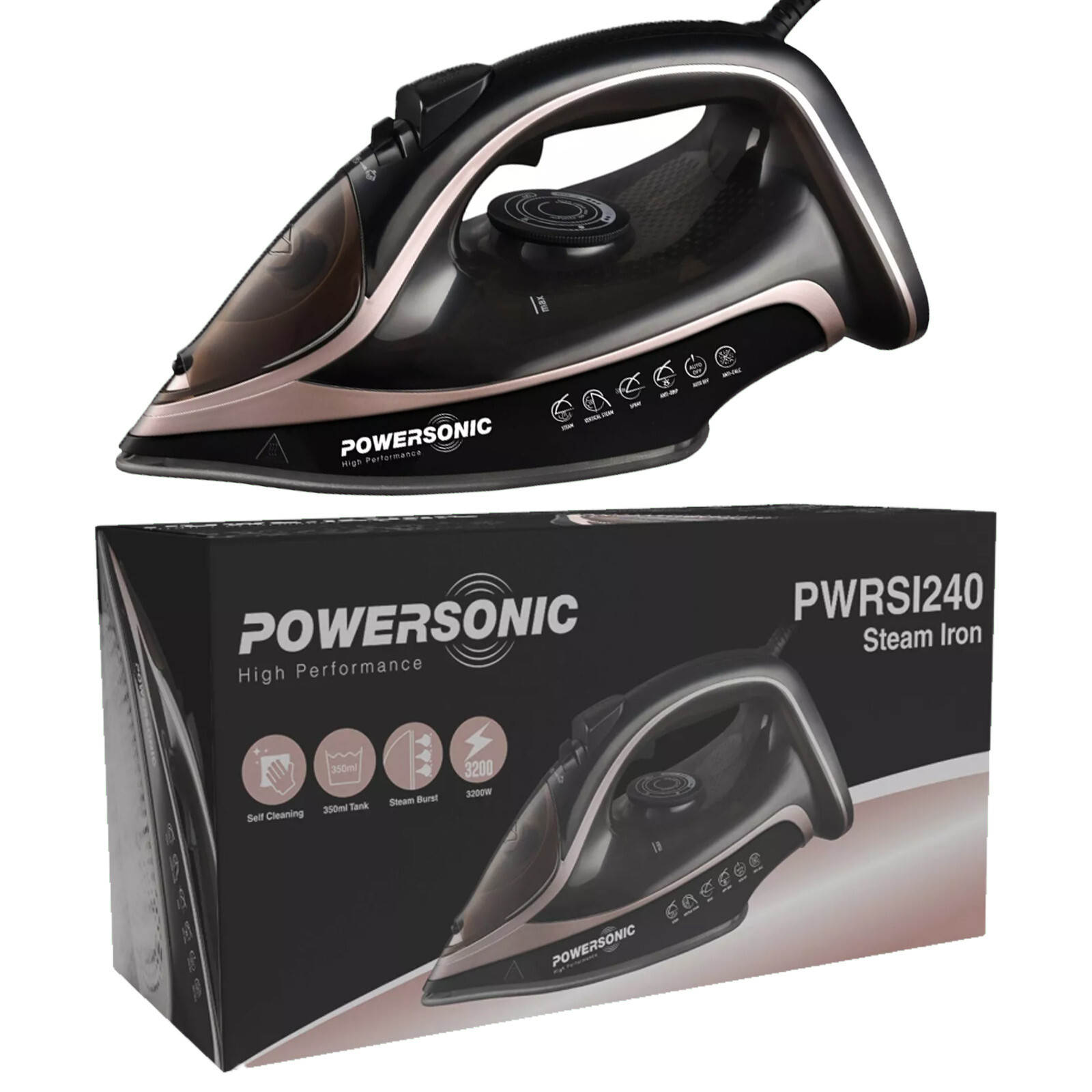 Steam Iron Ceramic Soleplate 3200W Anti-Calc Anti-Drip Vertical Steam Self Clean