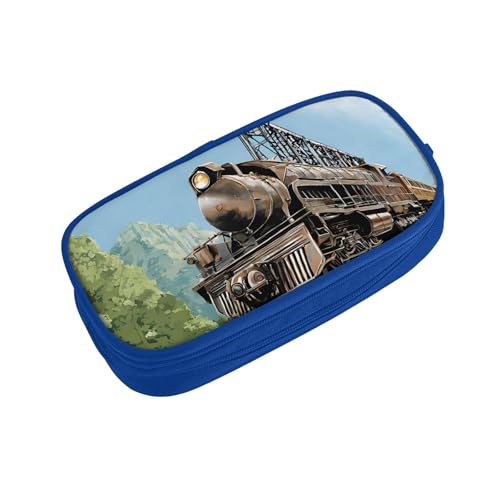 ZDFHKYDY Steam Train Zipper Pencil Case Pouch Pen Box Large Capacity Storage Bag for Office & Travel Multi-Compartment Stationery Organizer Holder Gift for Women Men 21x10.5x5 cm
