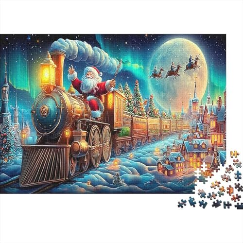 Santa's Train Ride 1000 Pcs Recycled Cardboard Pieces Jigsaw for Adults Santa on Steam Train Anxiety Reducer for Wall Decoration And Gifts Great Gift Ideas for Holiday And Birthday Presents 38x26cm/10