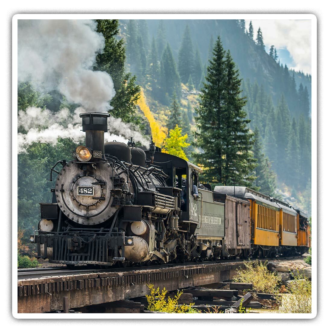 2 x Square Stickers 10 cm - Amazing Steam Train Bridge Spotter Cool Gift #8564