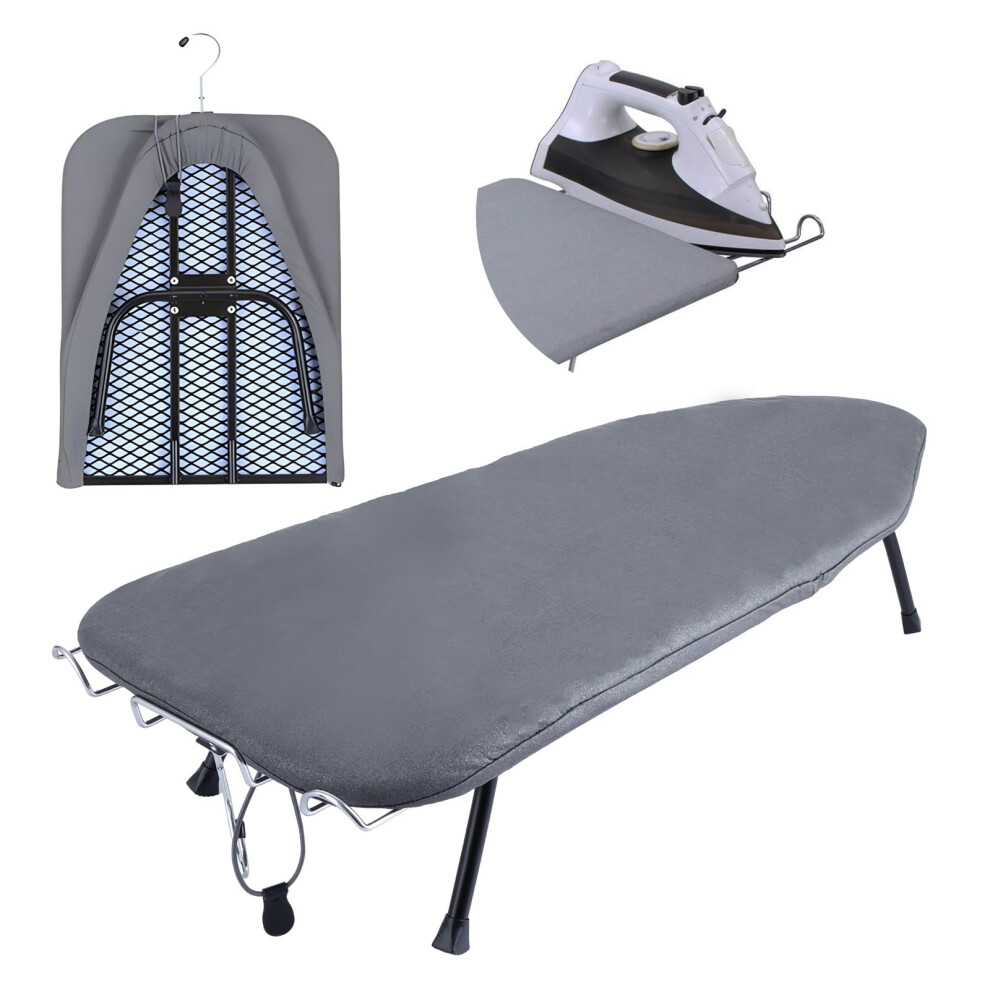 Oungy Foldable Table Top Ironing Board, 80 x 31 x 16cm Compact Folding Steam Iron Table Ironing Board with Cover, Non-Slip Folding Legs for Apartments
