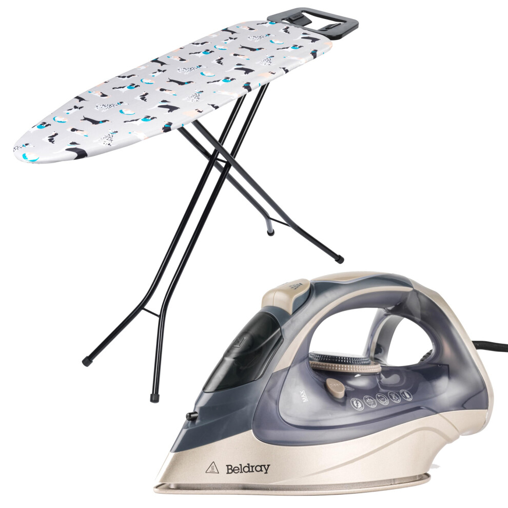 Beldray COMBO-9211 Steam Iron & Ironing Board Set ? Powerlite, Ceramic Soleplate, 200g/min Steam Shot, 320ml, Variable Temperature, Compact Ironing