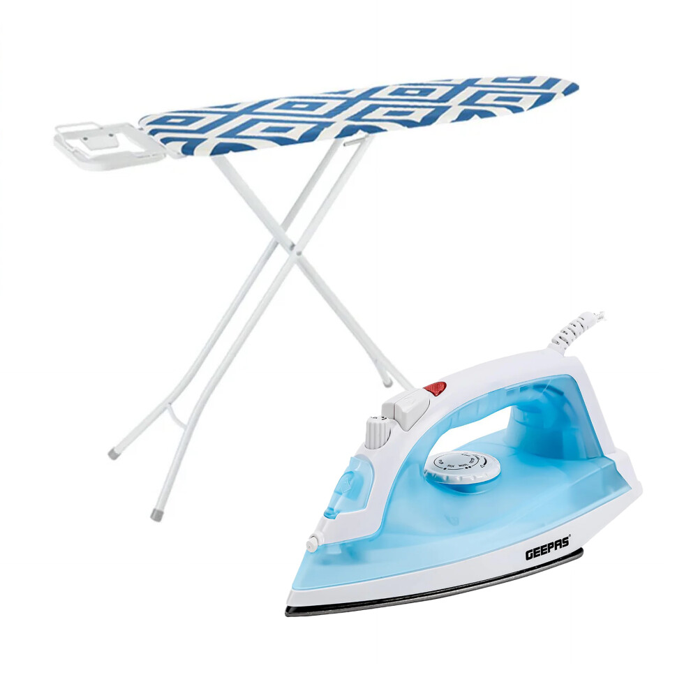 GEEPAS Steam Iron & ROYALFORD Ironing Board Combo Set| 1800W Iron with Fast Heat-Up Ceramic Soleplate Steam Control & 120ml Tank