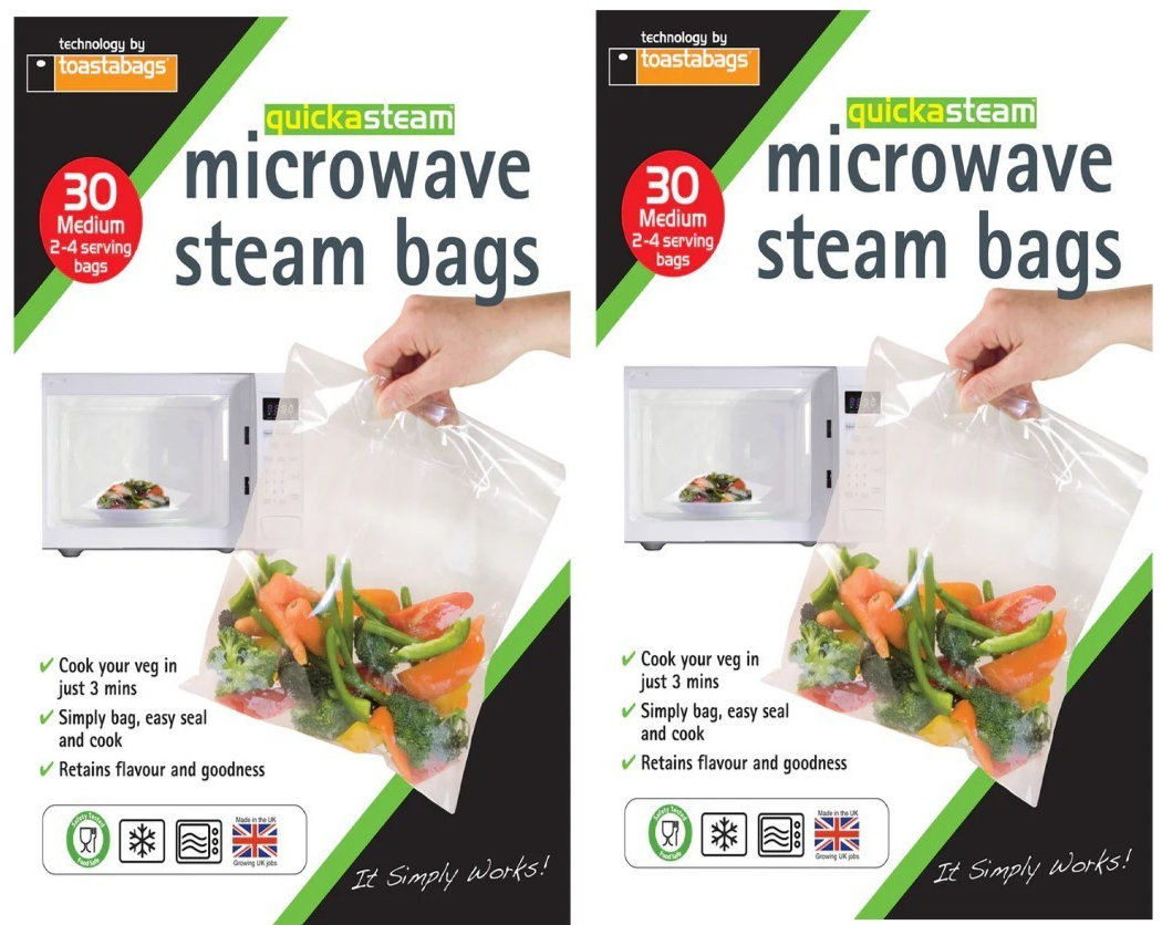 2 x Microwave Steam Bags Medium 30/pk Perfect For 2-4 Servings