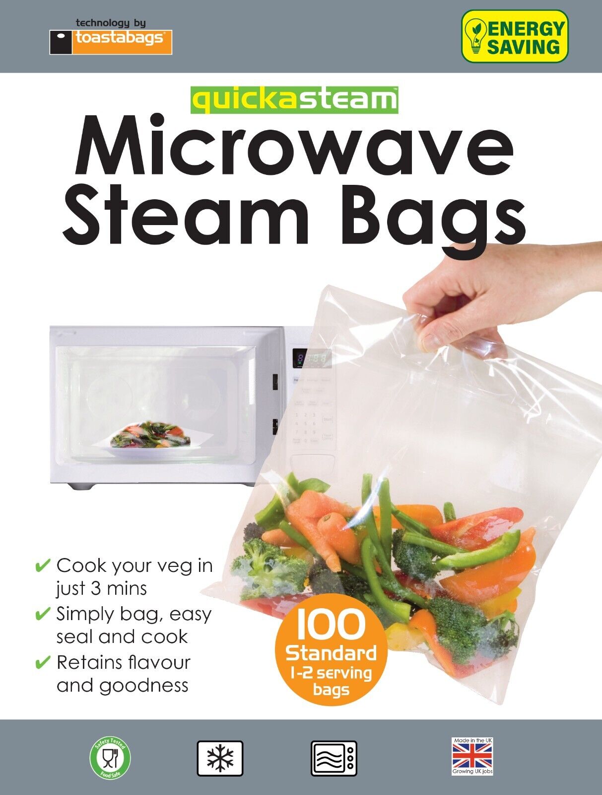 100 X Microwave Steam Bags - Size: STANDARD, 1-2 servings. Healthy, quick, easy