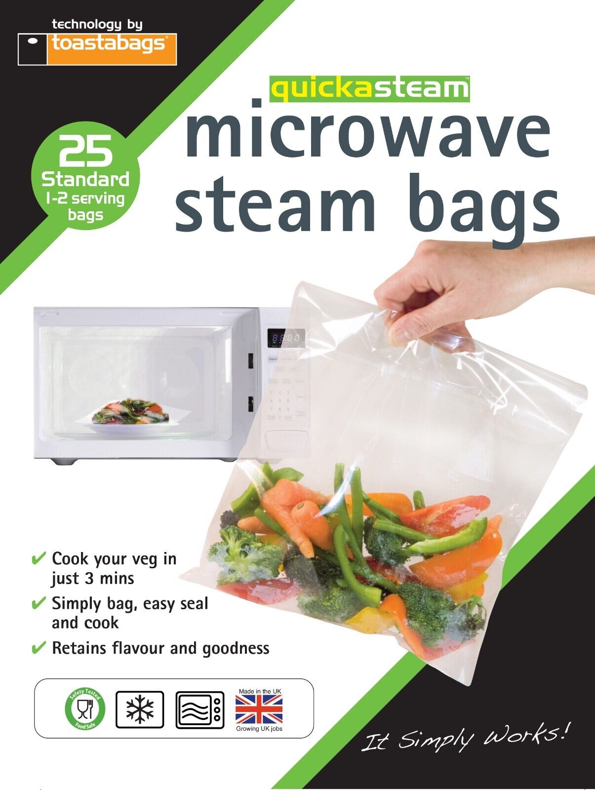 25 X Microwave Steam Bags - Size: STANDARD, 1-2 servings. Healthy, quick, easy