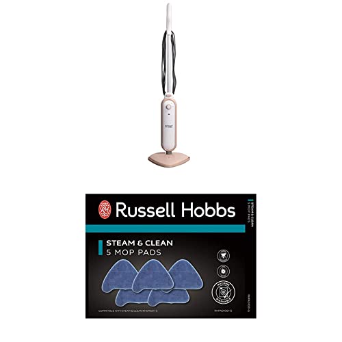 Russell Hobbs Steam & Clean Upright Steam Mop in Blush Pink, 1.4kW 380ml Water Tank, 8m Cord RHSM1001BP-G + Replacement Steam Mop Pads for RHSM1001-G Steam & Clean Mop, Pack of 5, RHPAD1001-G