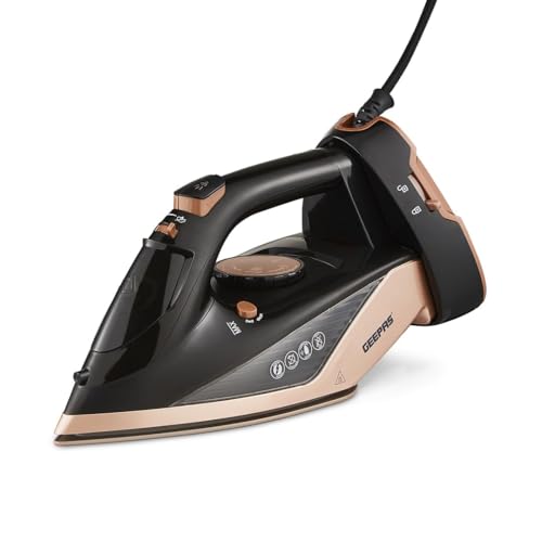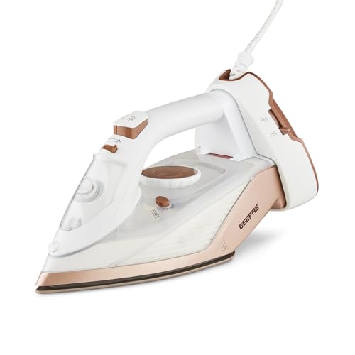GEEPAS Steam Iron | Clothes Dry & Steam Press | 30s Fast Heat-Up, Vertical Steaming | Nonstick Soleplate, Adjustable Temperature | 120ml Water Tank with 0.5g/Steam Output | 2 Year Warranty 1800W Gold