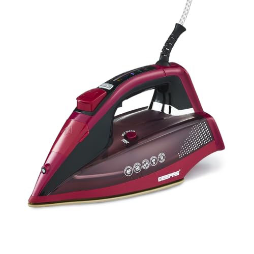 GEEPAS Steam Iron | Clothes Dry & Steam Press | 30s Fast Heat-Up, Vertical Steaming | Nonstick Soleplate, Adjustable Temperature | 120ml Water Tank with 0.5g/Steam Output | 2 Year Warranty 1800W Red