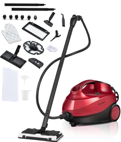 COSTWAY Steam Cleaner, 2000W Multipurpose Steam Mop with 20 Accessories & 1.5L Tank, Portable Household Steamer Cleaning for Floors, Windows, Carpet, Autos and More (Red)