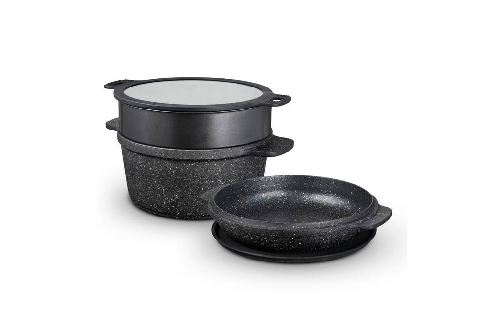 Tower Precision Casserole Set, Multi-Functional Steamer, Aluminium, 24cm T900190 in Black