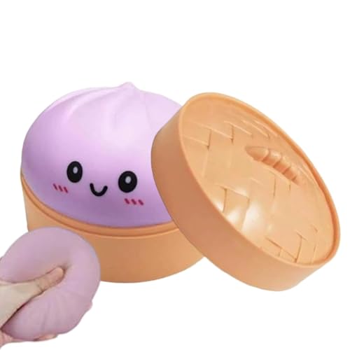 Bun Squeeze Toy - Bendable Pastry 1 Piece Elastic Stress Relief for Kneading with Palms, Radiant Squishy Dumplings with Steamer Basket, Fidget Shapeable Dough for Concentration