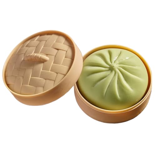 4Pcs Giant Dumpling Squishy, Cute Dumpling Squishy Large, Soft Squeeze Decompression Dough, Jumbo DumplingStress Ball (Green(with steamer basket))