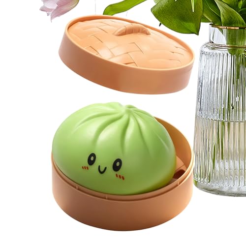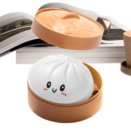 Realistic Steamer Bun Squeeze Toy, Pinch Le Baozi Stress Relief Prank Toy with Steamer Basket (B)