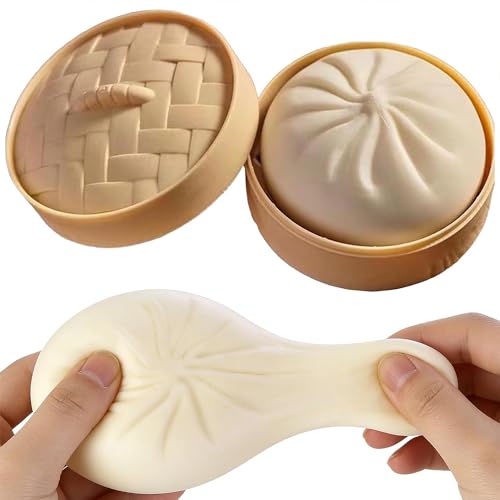 Giant Dumpling Squishy Toys, Funny Dumplings Squishy Fidget Toys, Cute Dumplings Squeeze Toy with Steamer Basket, Novelty Giant Dumpling Stress Relief Sensory Toy, for Kids & Adults
