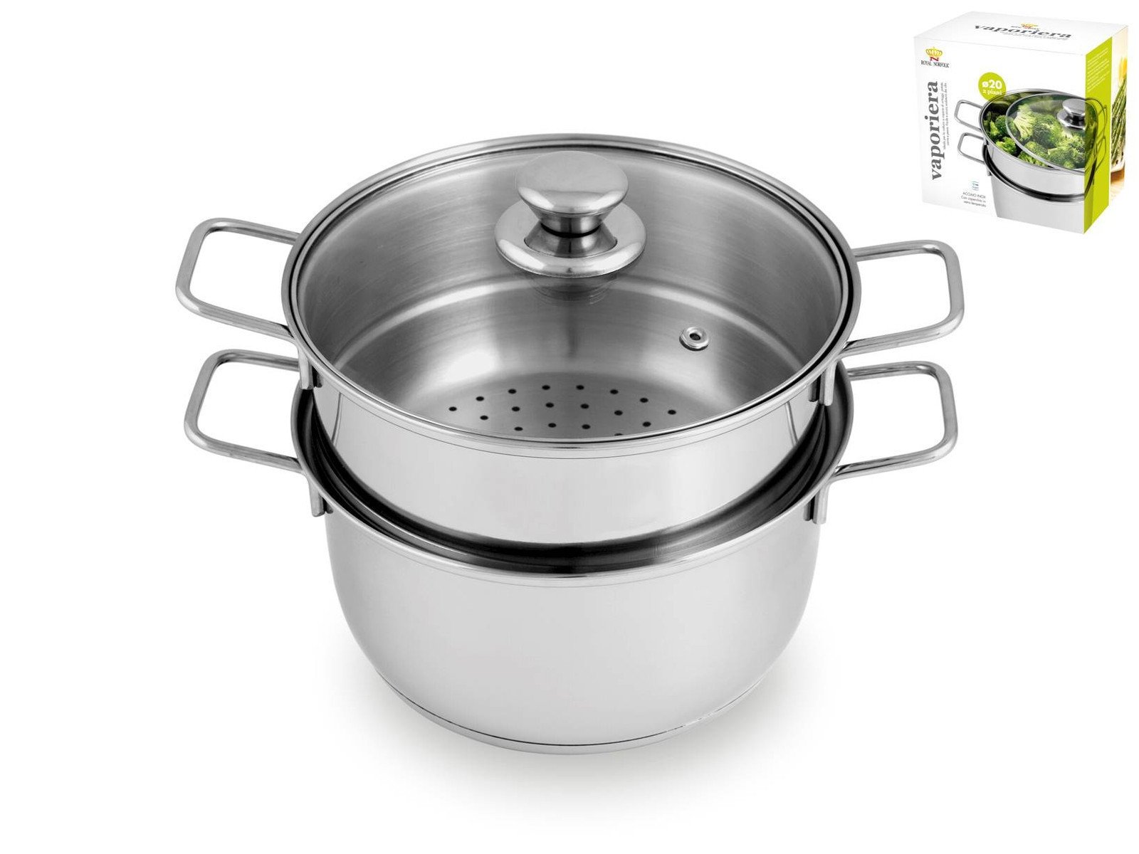 Stainless Steel Steamer Basket With Glass Lid 20cm Royal Norfolk