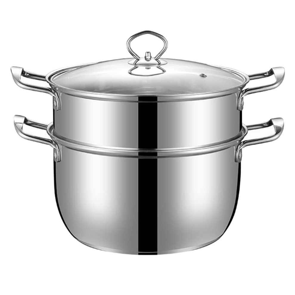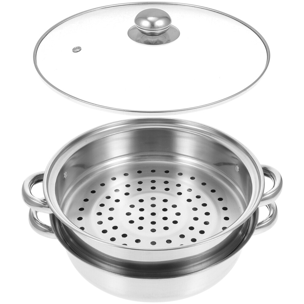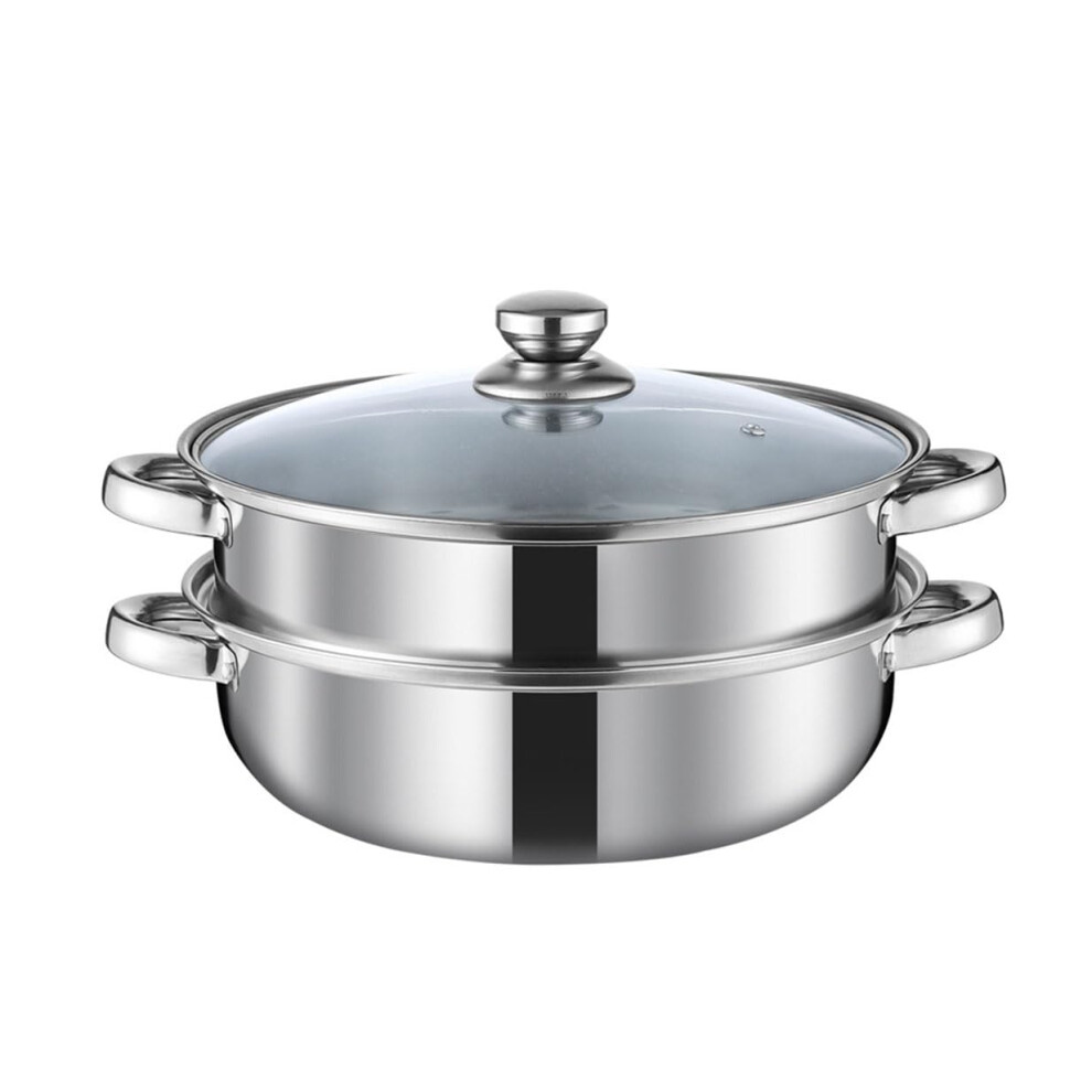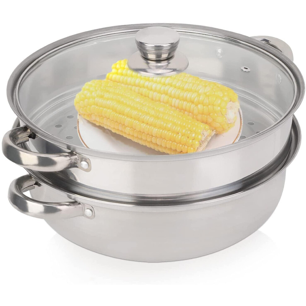 2-Layer Steamer for Cooking 28 cm Stainless Steel Vegetable Steamer Pot with Glass Lid for Dumplings and Food