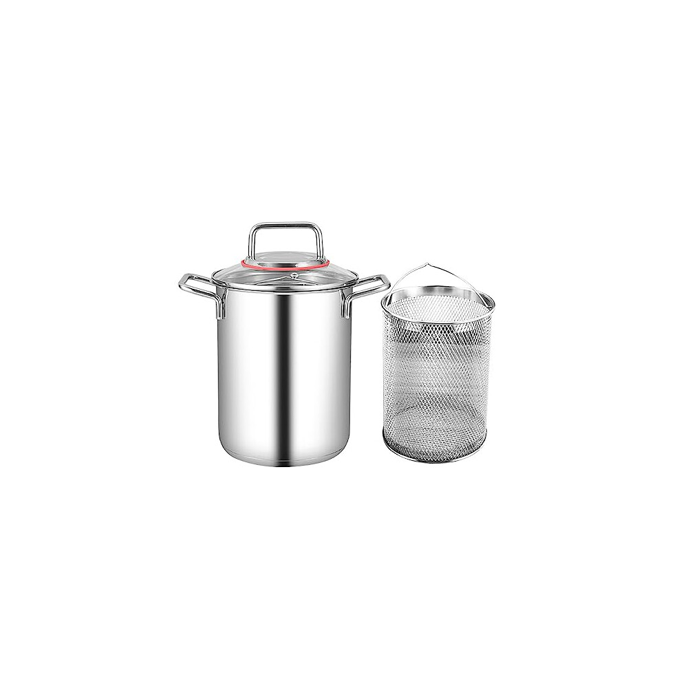 (As show, One size) Small Deep Fryer for Home Use 1L/0.35GAL Stainless Steel Milk Steamer Frying Pot With Basket Non-toxic Kitchen Cooking for One or