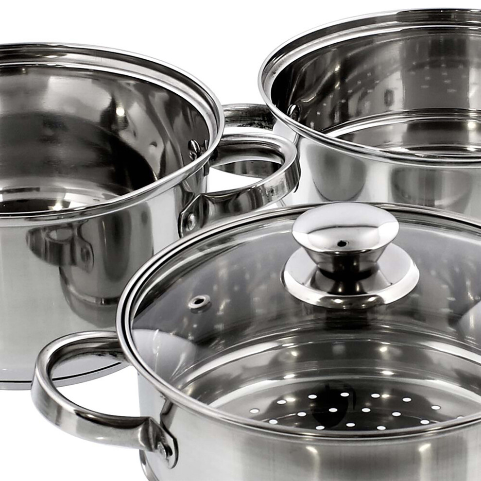 Royal Cuisine 3 Tier Multi Layer Stainless Steel 20cm Steamer cooking Pot With Stackable Pan Insert/Glass Lid Cookware Set food steamer with Silicone Handles induction cookware