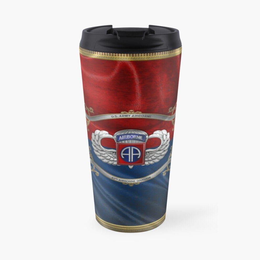 Insulated Travel Coffee Mug 82nd Airborne Division - 82nd ABN Insignia with Parachutist Badge over Flag Stainless Steel Cup Tumbler 17oz