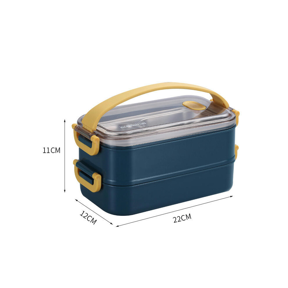 (1.6L double -layer classic blue) 304 Stainless Steel Double -Layer Insulation Lunch Box Office Student Student Division Lunch Box Can Water Water Ben