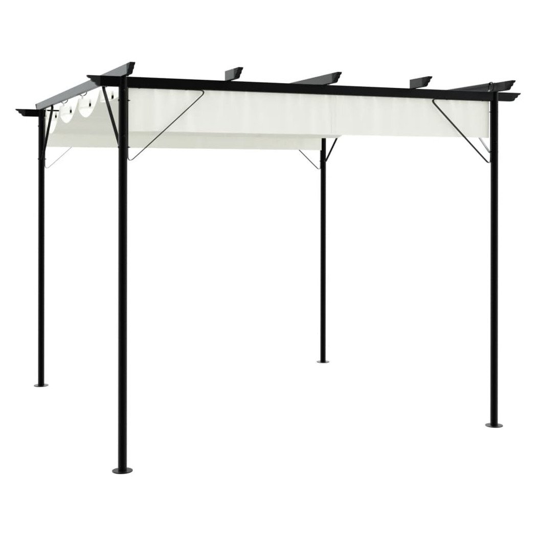 Pergola 3x3x2.25m Cream White Powder-Coated Steel Retractable Roof Garden Canopy