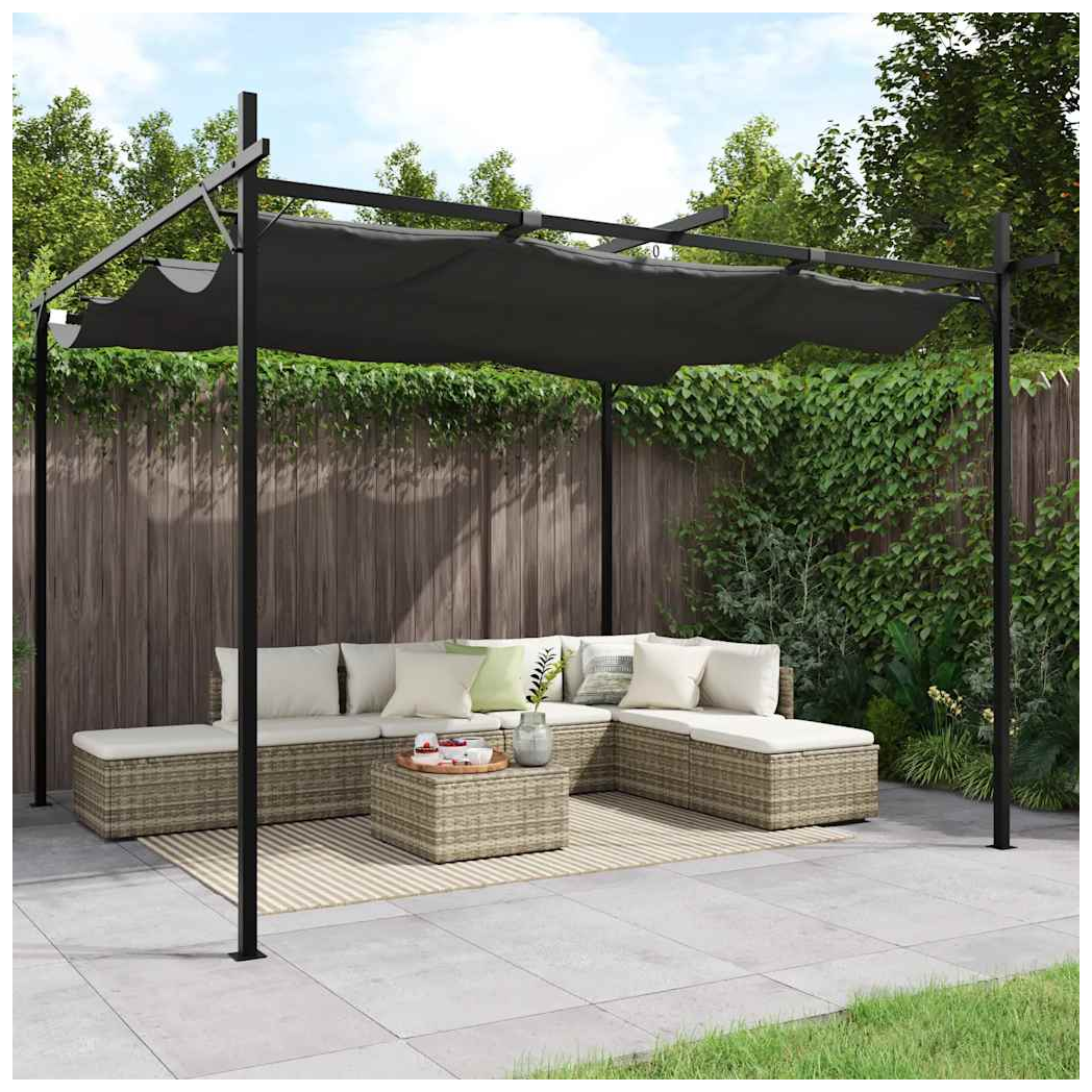 Pergola Retractable Roof Anthracite 295x292x230cm Outdoor Polyester Steel/Alu