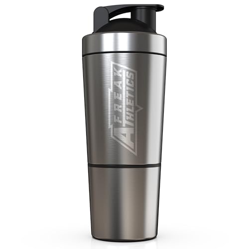 Freak Athletics Stainless Steel Protein Shaker Bottle with Storage - 800 ml Shaker for Protein Shakes - BPA Free Shaker Bottle (Stainless Steel with Storage)
