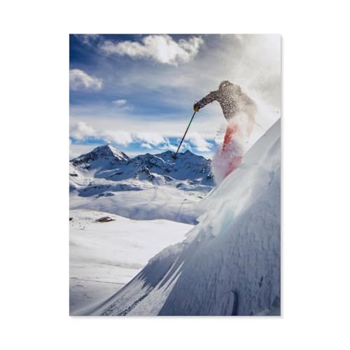 Jigsaw Puzzles 1000 Pieces Paper Assembling Picture,Skier descending a steep slope, blue sky and mountains,Adults Games Educational Toys(38x26cm)-O61