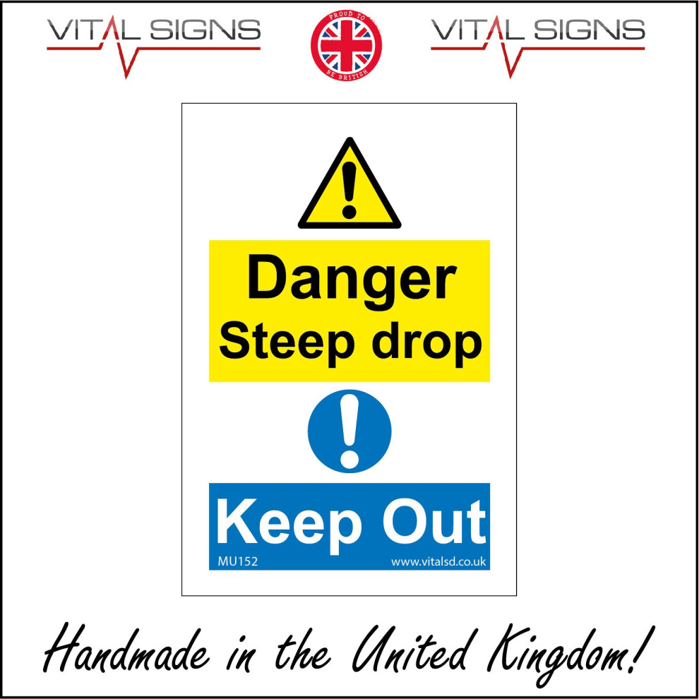 (100 x 150mm - 4 x 6, 1mm Pvc Foamex) DANGER STEEP DROP KEEP OUT SIGN MU152 SAFETY STICKER RIGID INDOOR OUTDOOR