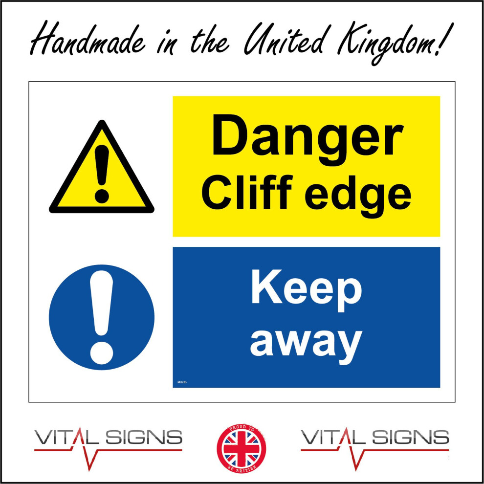 (150 x 100mm - 6 x 4, C - Dibond / Composite Aluminium) MU283 Danger Cliff Edge Keep Away Sign Drop Fall Fatal Height Unsafe Rocks Steep 600mm x 450mm
