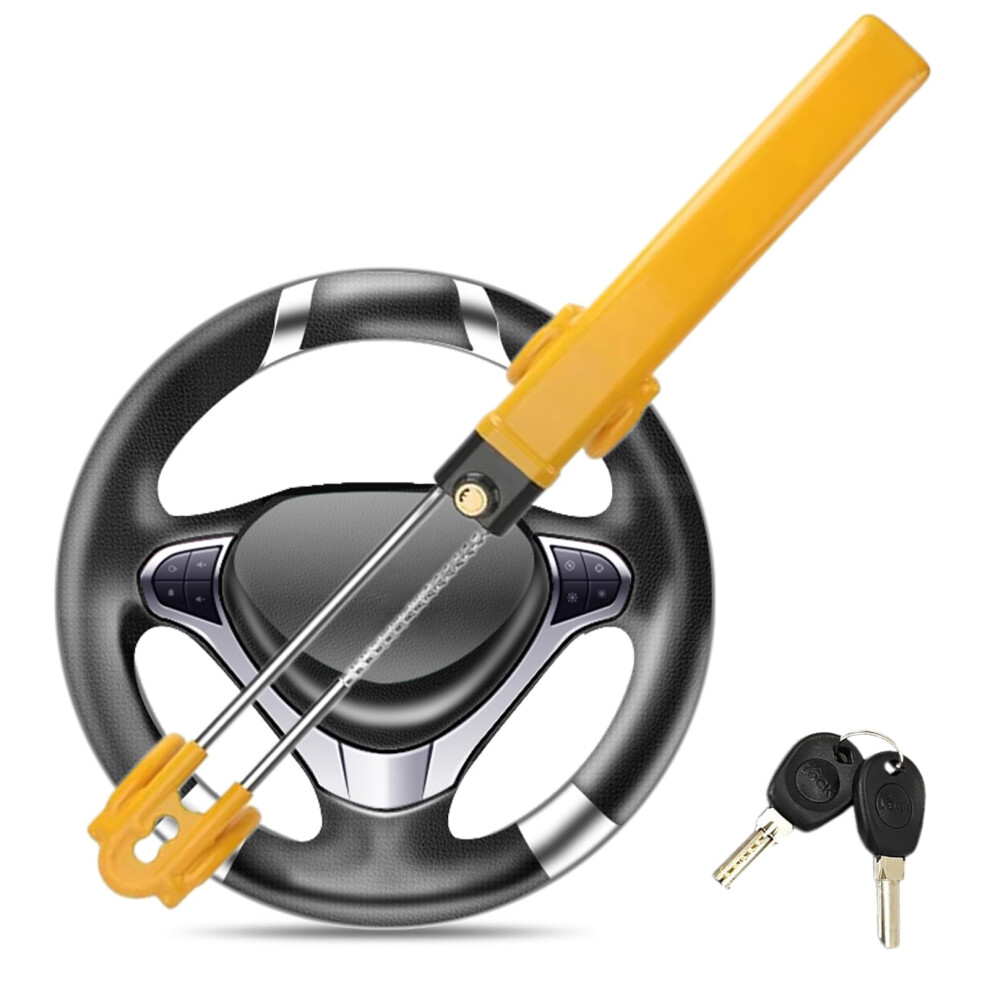 Steering Wheel Lock for car Universal Adjustable Length Anti-Theft Device Car Locks for Car SUV Pickup Truck Van(Yellow)