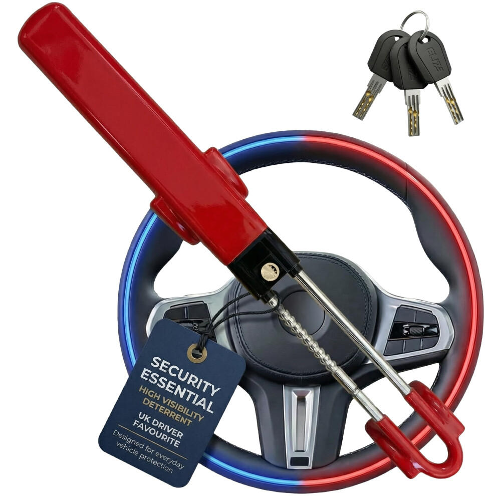 Tevlaphee Steering Wheel Lock Twin Bar, Steering Lock, Car Steering Wheel Locks, Car Lock Anti-Theft Device, High Visibility, Heavy Duty, Universal Fit, Adjustable Length,3 Keys(Red)