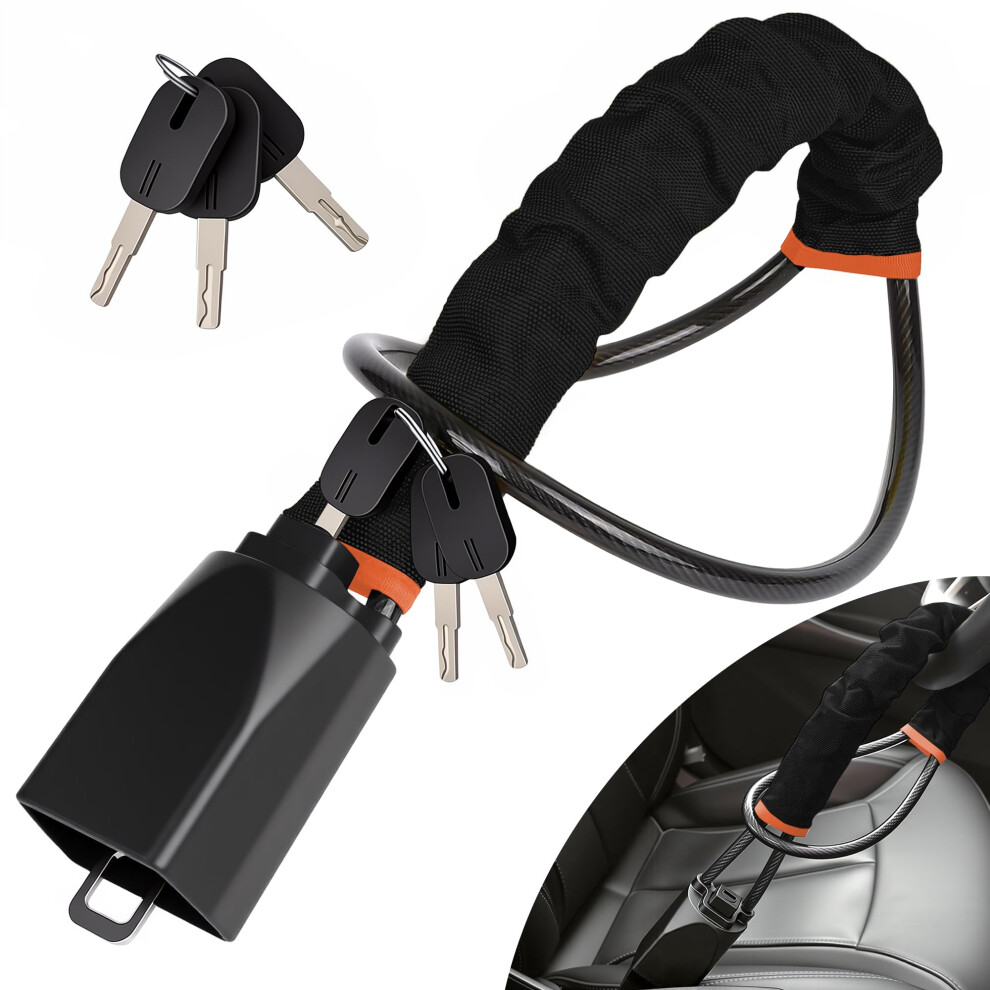 Steering Wheel Lock with 3 Keys,Seat Belt Lock High Visibility Car Locks Cut Resistance Anti-Theft Device Universal Steering Wheel to Seat Belt Locks